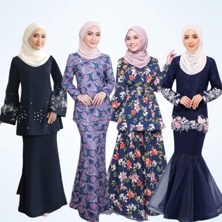 Baju kurung moden lace meleana raya 2021 biru gelap dark blue.